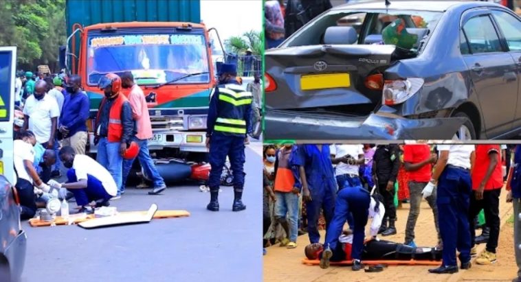 Ni impanuka yatewe n’imodoka ya fuso yavaga mu mugi maze igonga moto zigera kuri eshatu ,aho zangiritse, n’abo bari batwaye barakomereka bikomeye.Si abo gusa kuko hari n’indi modoka y’ivatiri nayo iyi fuso yagonze ,gusa amahirwe ni uko muri iyi mpanuka nta muntu n’umwe wahasize ubuzima .