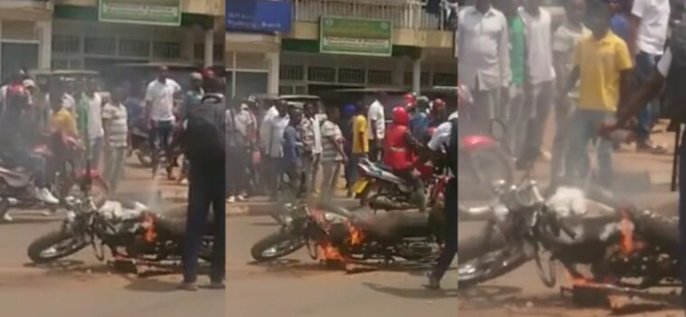 Abaturage babirebaga biba bavuze ko uyu musore yari arindiriye gukomeza nk’abandi bitunguranye babona iyi moto itangiye gucumba umwotsi undi ahita ayitaruka itangira gufatwa n’umuriro.