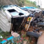 Imodoka y’ikamyo yo mu bwoko bwa Fuso yavaga Kigali yerekeza Nyamasheke yakoze impanuka yikoreye toni 12 z’umuceri, akawunga n’udukarito twa Biswi