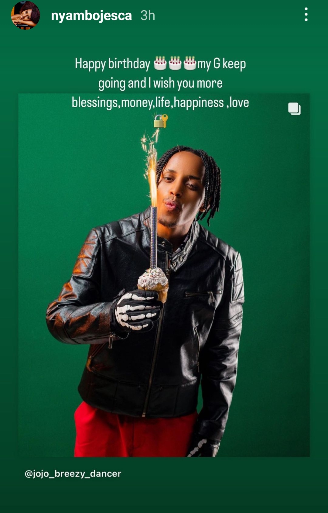 Nyambo Jesca abinyujije kuri Instagram mu magambo meza cyane yifurije Jojo Breezy Dancer isabukuru nziza maze agira ati:” Isabukuru nziza nshuti yange komeza utere imbere kandi nkwifurije umugisha mwinshi, amafaranga menshi, ubuzima, ibyishimo ndetse n’urukundo”.