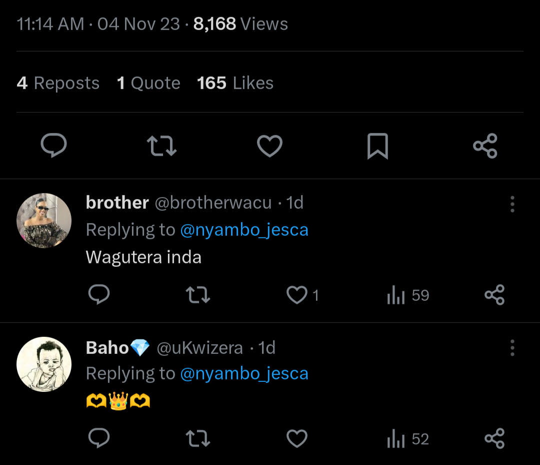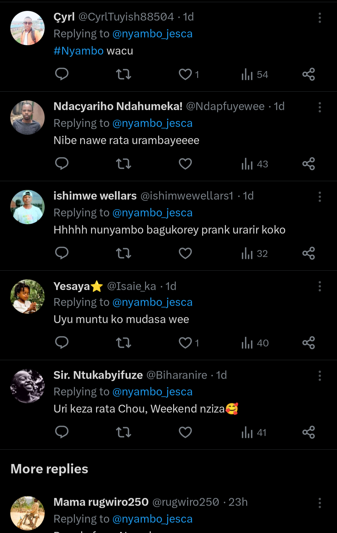 Nyambo abinyujije kurukuta rwe rwa X yashyizeho ifoto uwo mukobwa yambaye imyambaro y’umweru ariko ubona ko basa neza kugeza ubwo abantu batangiye kumwitiranya na Nyambo bavuga amagambo ateye isoni.