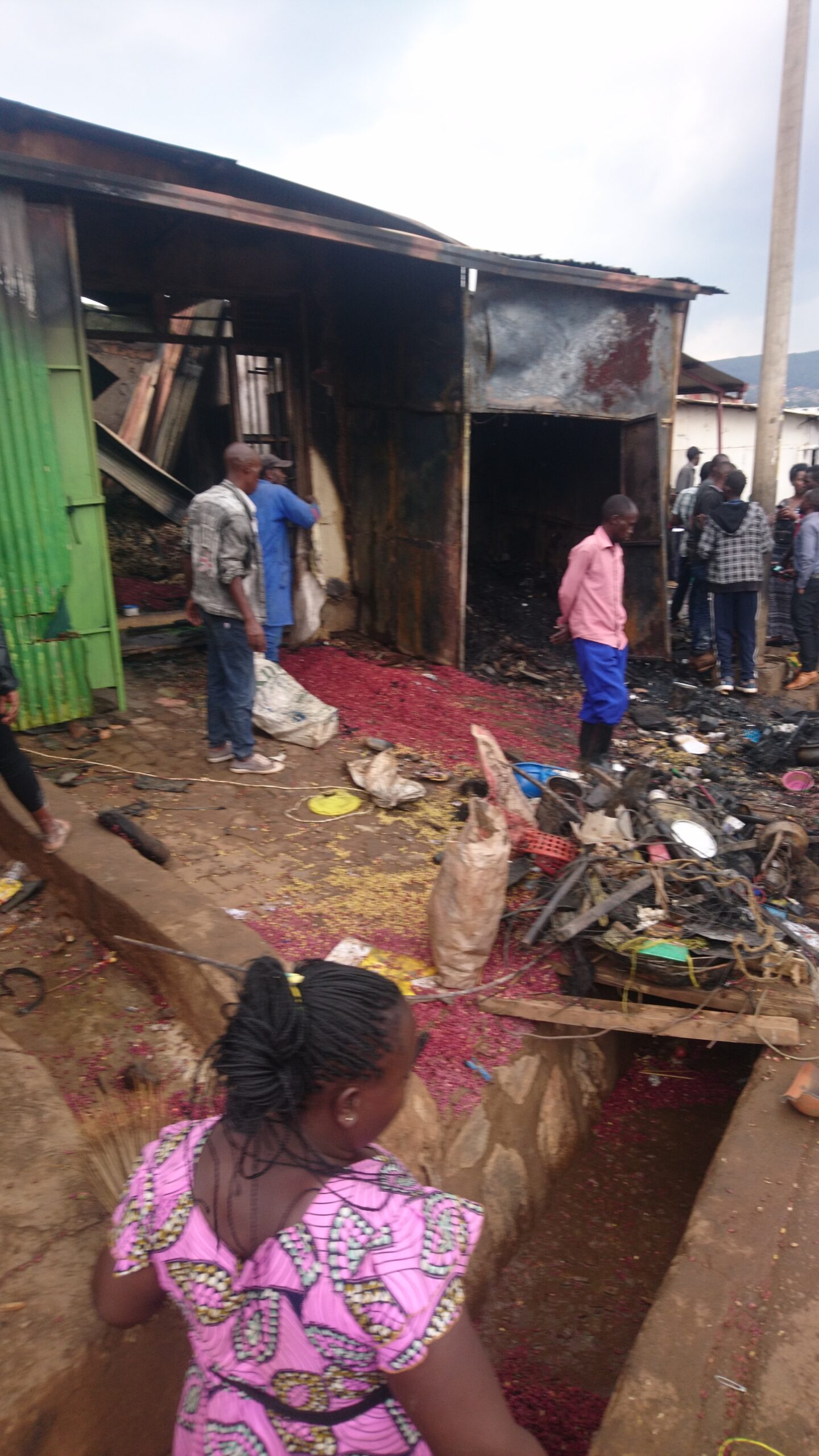 Mu bo twagerageje kwegera batubwiye ko iyi nkongi y’umuriro yatewe n’umusuderi wari uri gucomeka imashini ze zisudira maze insinga z’anashanyarazi zikora siriko bituma umuriro utangira kuzamuka.