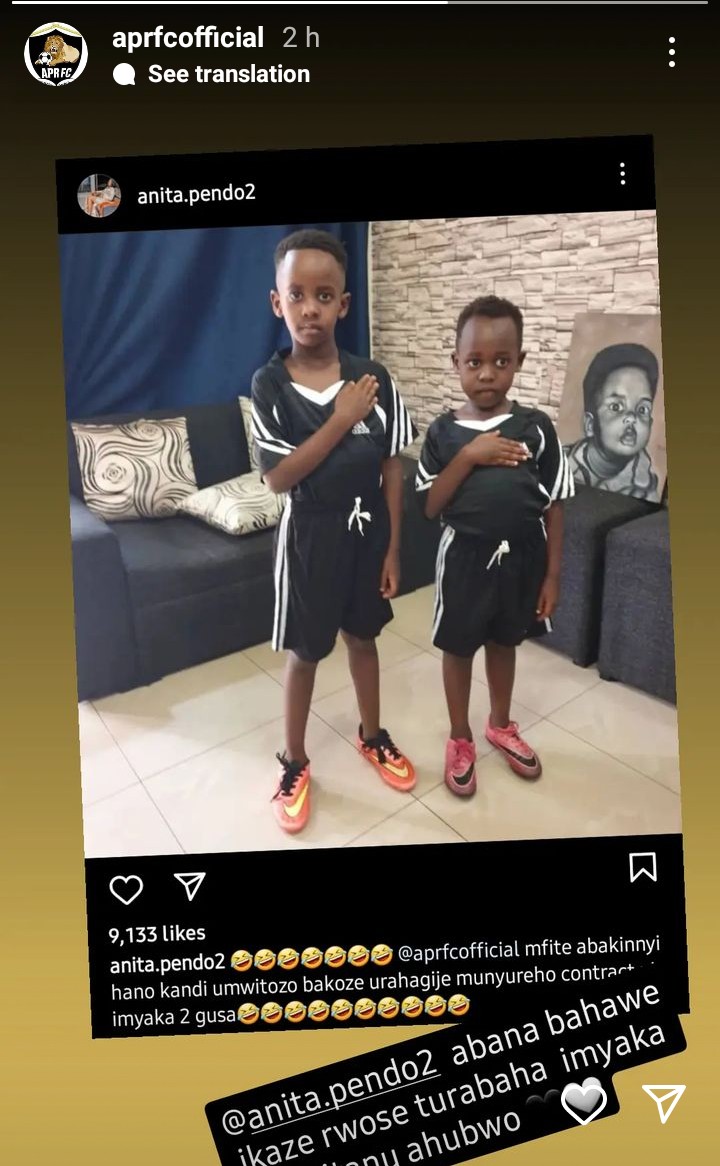 Kuri ubu rero, ikipe ya APR FC ibinyujije ku rukuta rwayo rwa Instagram, yemeye kubasinyisha igihe kingana n’imyaka 5. Bagize bati “Anita Pendo abana bawe bahawe ikaze rwose turabaha imyaka itanu ahubwo.”