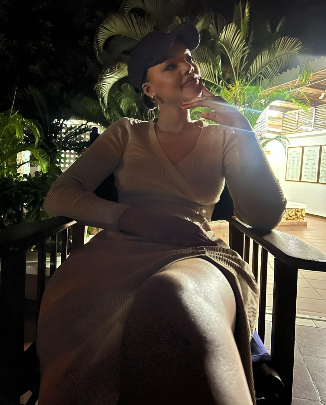 Abinyujije kurukuta rwe rwa Instagram yashyizeho ifoto yambaye ikanzu ndende ariko isatuye kuruhande kuburyo itako ryose ryari hanze maze abamukurikirana baribonye batangira kumutaramira.