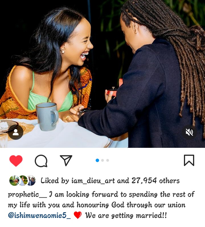 Abinyujije ku rukuta rwe rwa Instagram yagize Ati ” Ntegereje kumara ubuzima bwanjye bwose na we turi kumwe kandi duhesha Imana icyubahiro binyuze mu mubano wacu ,Ishimwe Naomi tuzashyingiranwa!!”.