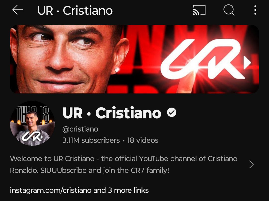 Nyuma y’iminita 90 gusa Cristiano Ronaldo afunguye YouTube Channel, yari agejeje abamukurikira (Subscribers) barenga miliyoni.