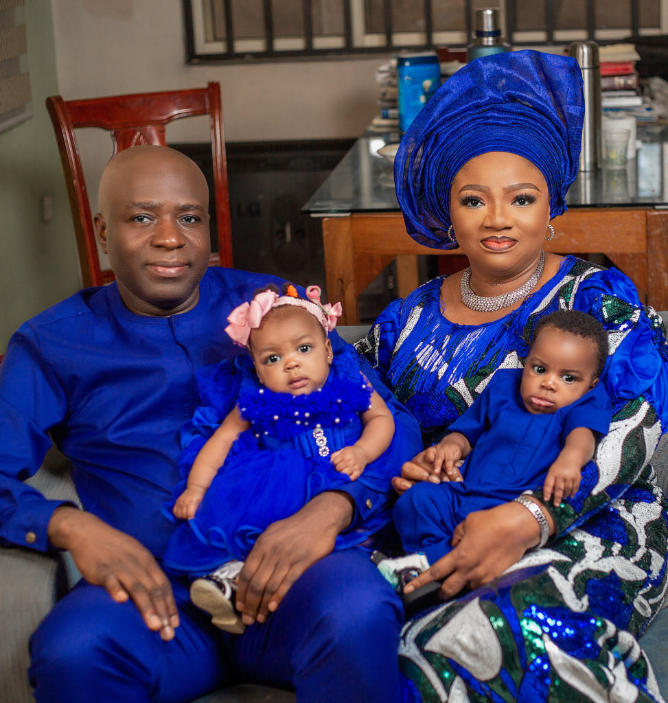 We numugabo we ndetse n’umwana wabo wa mbere wiga muri kaminuza bizihije isabukuru yambere y’abakobwa babo b’impanga Emmanuella na Daniella i Port Harcourt, muri Leta ya Rivers mu ntangiriro zuyu mwaka.
