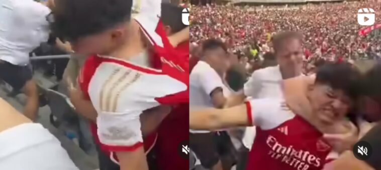 Nyuma yo kubatsindira mu kibuga banabakubitiye hanze y’ikibuga! Abafana ba Arsenal bakubise ibipfunsi abafana ba Manchester united amasura arahindana -Videwo