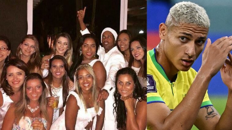 Richarlison yavugaga ku ishusho yasakaye ku isi hose ya Ronaldinho igaragaramo uwatsindiye igikombe cy’isi 2002 (Ronaldinho) muri pisine akikijwe n’abagore benshi bambaye bikini.