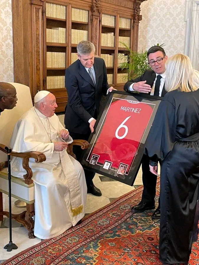 Umushumba wa Kiliziya Gaturika ku Isi, Papa Francis ,ku munsi w’ejo hashize yakiriye impano y’umupira yohererejwe na Lisandro Martinez, myugariro wa Manchester United.
