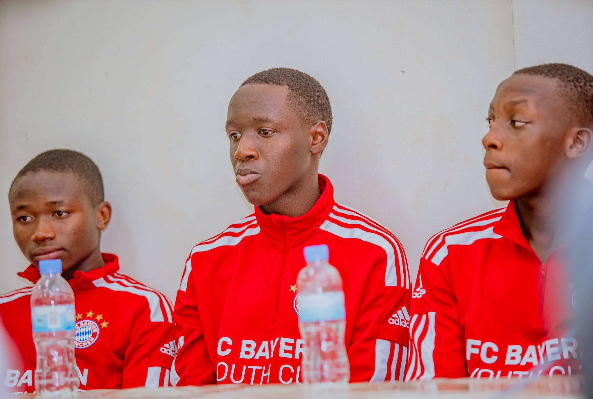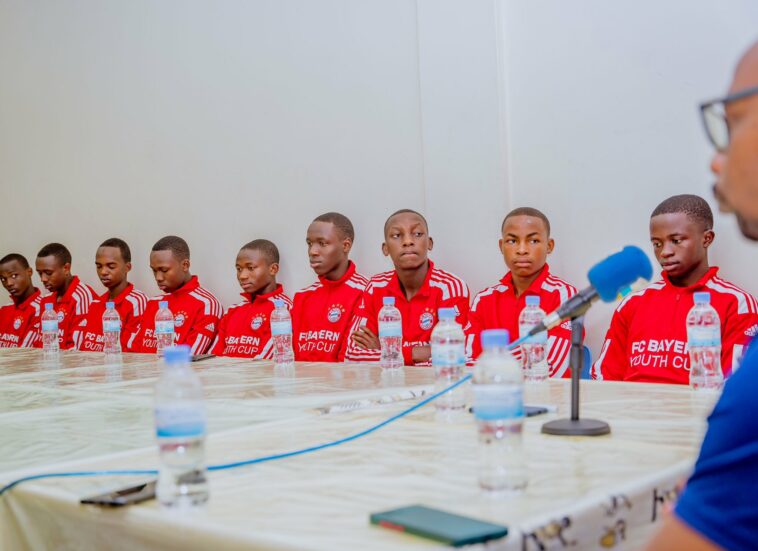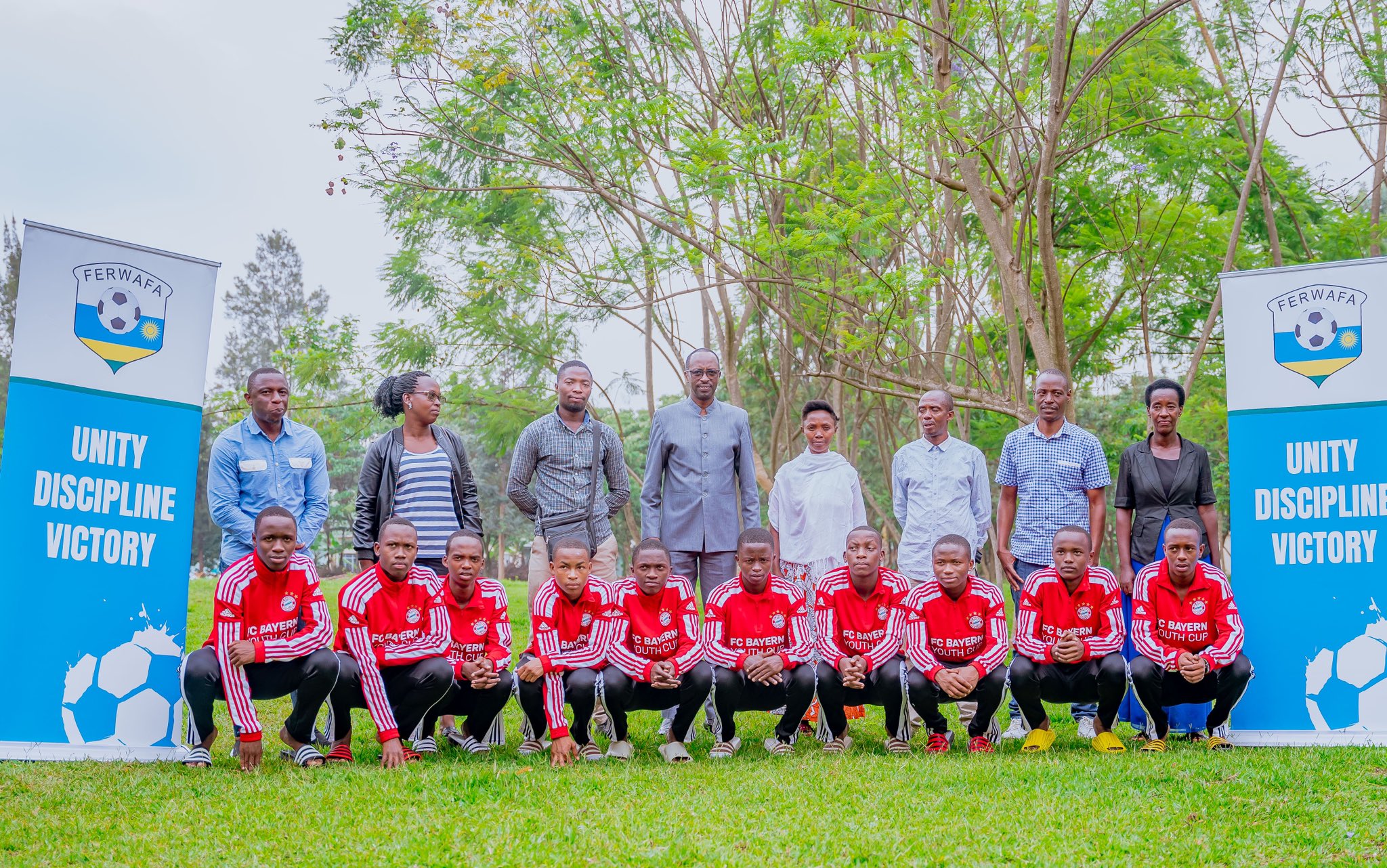 Perezida wa FERWAFA yakiriye abana baserukiye u Rwanda mu marushanwa y’abakiri bato ategurwa n’ikipe ya Bayern Munich.