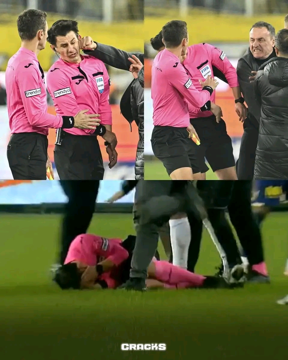 Umusifuzi Halil Umut Meler wari uyoboye uwo mukino yakubiswe na Perezida bituma n’abakinnyi be nabo baramufasha bahondagura uyu musifuzi.
