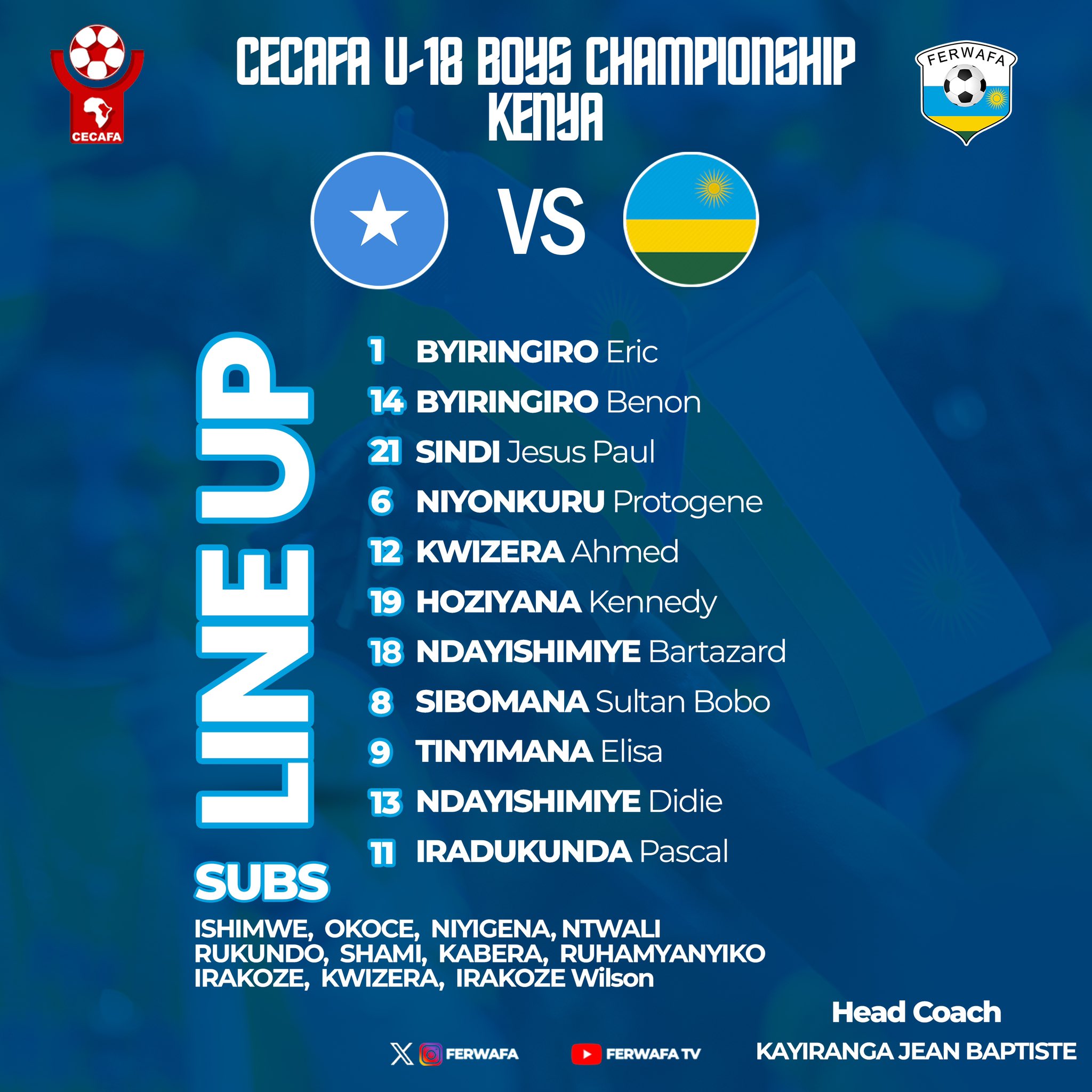Petit Messi aracyibanzamo: Kayiranga Jean Baptiste yatangaje abakinnyi 11 b’ikipe y’igihugu Amavubi agiye kubanza mu kibuga imbere ya Somalia.