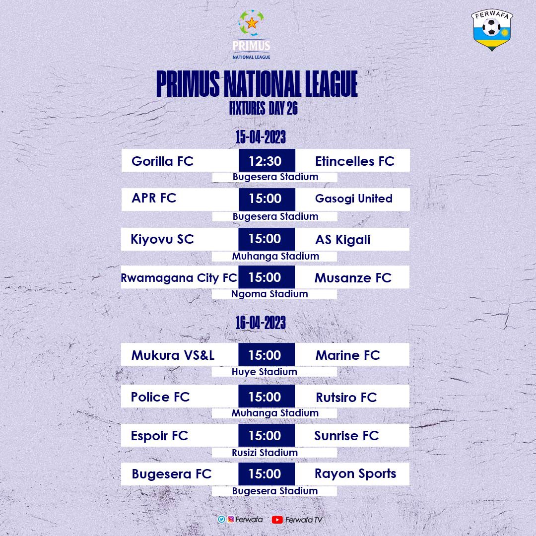 Kuva ku munsi wejo kuwa Gatandatu , shampiyona y’ikiciro cya mbere mu Rwanda iragaruka , amakipe akina imikino y’umunsi wa 26.