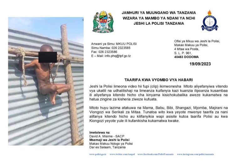 Muri iryo tangazo Polisi ya Tanzania yagize iti” Tukimara kubona iriya foto yuriya mwana, twahise dutangira igikorwa cyo guhiga bukware umuntu wese waba yakoze kiriya gikorwa cya kinyamaswa kugirango atabwe muri yombi ashyikirizwe ubutabera”.