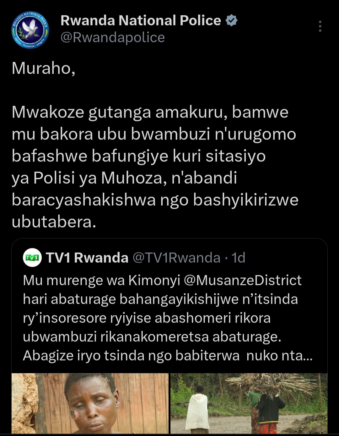 Ati: ” Muraho, mwakoze gutanga amakuru, bamwe mu bakora ubu bwambuzi n’urugomo bafashwe bafungiye kuri sitasiyo ya Polisi ya Muhoza, n’abandi baracyashakishwa ngo bashyikirizwe ubutabera.”