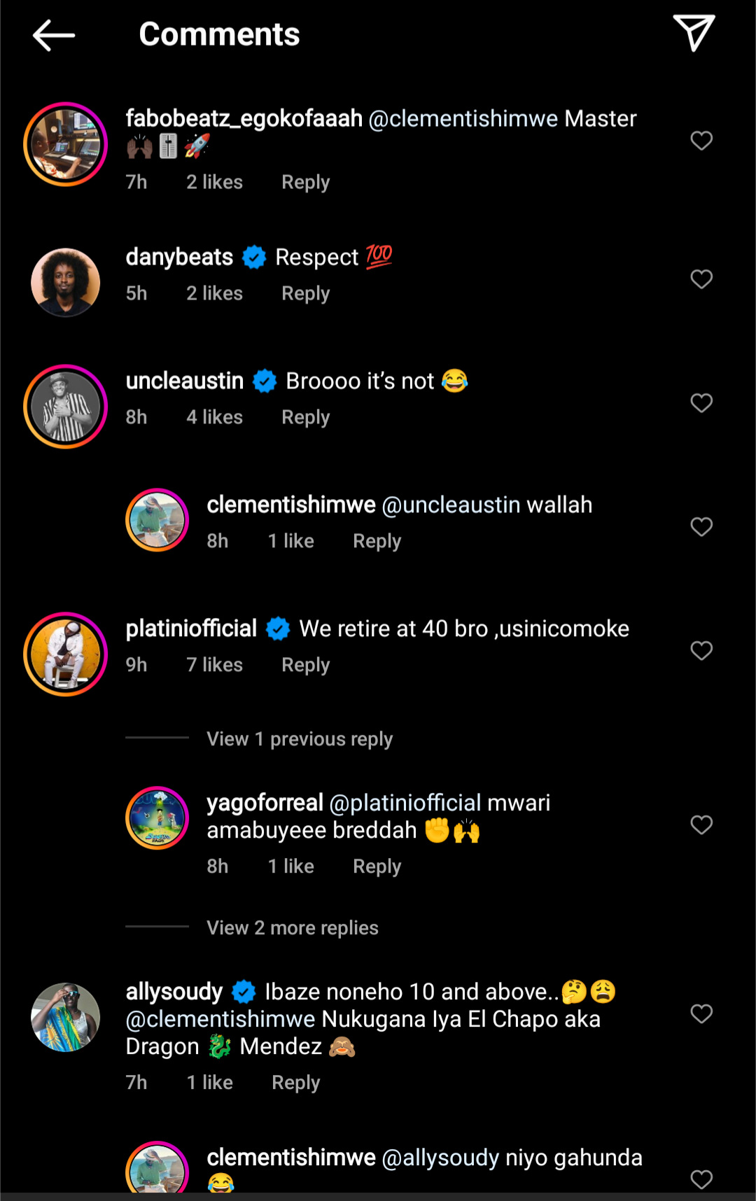 Umuhanga mu gutunganya umuziki hano mu Rwanda Ishimwe Clement akaba nyiri nzu itunganya umuziki izwi cyane nka Kina Music yakoreyemo abahanzi bakomeye barimo Dream boys, Christopher, Nel Ngabo, Igore Mabano ndetse n’abandi benshi.