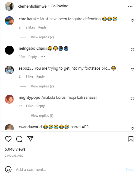 Mu mashusho yashyizwe hanze na Clement mu busa nkaya mikino y’abasaza, Clement Nishimwe yacenze umukino wari umwatatse mu macenga tuzi ku bakinnyi bakomeye I Burayi nka Neymar na Messi.MU magambo yaherekesheje iyi video, Clement Nishimwe yishimye hejuru mugenzi we ufana ikipe ya Manchester United Nemeye Platini na Dr Muyombo Thomas agira ati,”aho bigeze ninjye watabara ikipe ya manchester United” kuri ubu iri mu bihe bitari byiza.