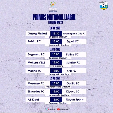 Kuva kuri uyu wa Gatanu kugeza ku Cyumweru mu masitade atandukanye mu Rwanda harakinwa imikino y’umunsi wa 23 muri shampiyona y’ikiciro cya mbere.