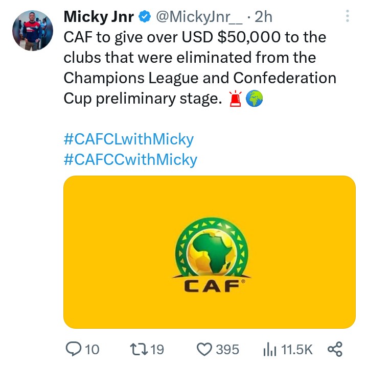 Abinyujije ku mbuga ze zirimo na twitter, yavuze ko amakipe atarageze mu matsinda ya CAF Champions League APR FC yari irimo ndetse na CAF Confederation Cup 2023-2024 yarimo Rayon Sports azahabwa arenga ibihumbi 50 by’amadolari mu manyarwa agera muri miliyoni 60 Rwr. Gusa ariko aya makuru ntacyo CAF irayatangazaho.