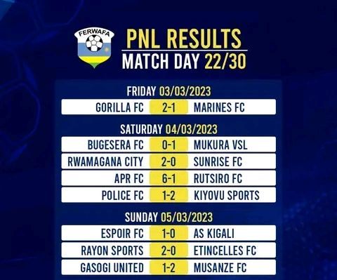 Mu mpera z’icyumweru gishize, kuva kuwa Gatanu kugeza ku Cyumweru ku bibuga bitandukanye mu Rwanda hakinwaga imikino y’umunsi wa 22 muri shampiyona y’ikiciro cya mbere.