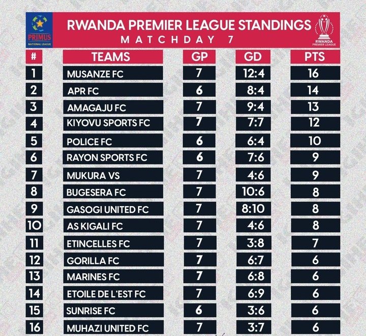 Rayon Sports ntiyabuze byose, yatumye APR FC iva ku myanya wa Mbere! Uko amakipe akurikirana ku rutonde rwa Shampiyona y’u Rwanda nyuma y’umunsi wa 7