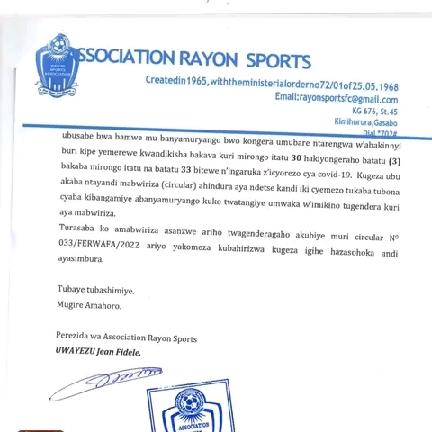 Rayon Sports yandikiye FERWAFA iyisaba kubahiriza amabwiriza