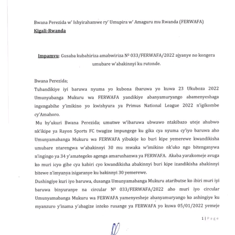 Ibaruwa Rayon Sports yandikiye FERWAFA