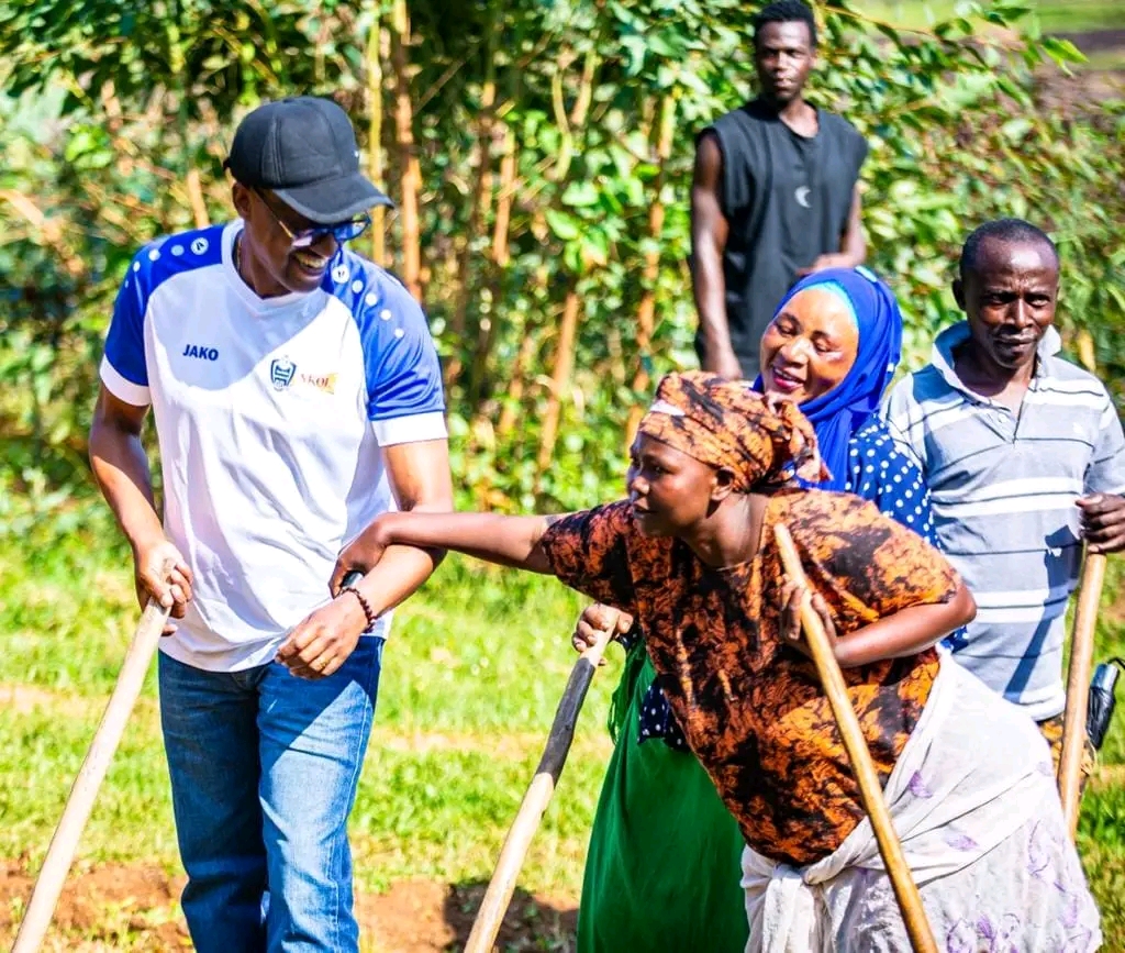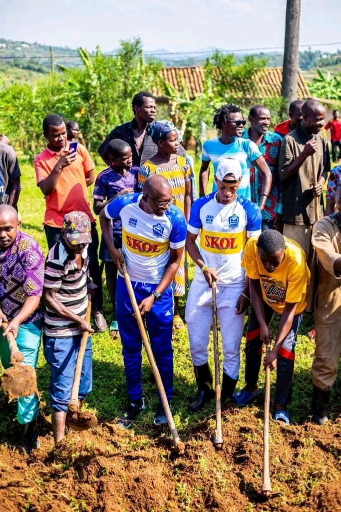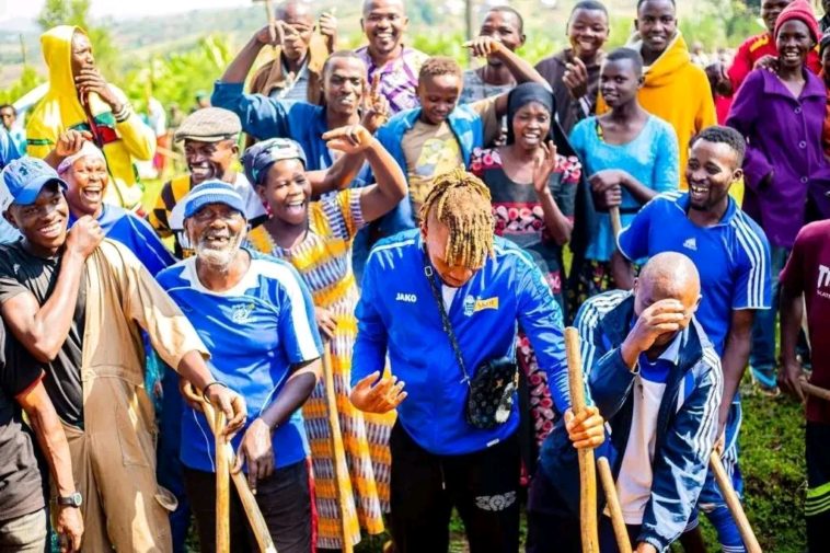 Abakinnyi, abatoza, abayobozi n’abafana ba Rayon Sports bifatanyije n’abaturage b’i Mugandamure,mu karere ka Nyanza, mu muganda rusange ngarukakwezi.