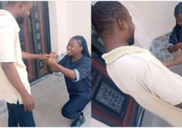 Ndabikunze NDASETSE in urukundo Umukobwa yashinze ivi yambika impeta umusore, abantu barumirwa(AMAFOTO).