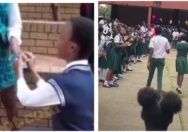 Ndabikunze NDASETSE in urukundo Umunyeshuri wo mu yisumbuye yatereye ivi umukunzi we imbere y’abandi ,induru ziravuga.