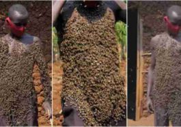 Ndabikunze Ndababaye NDASETSE in Mu Rwanda Umunyarwanda umaze imyaka 30 agendana inzuki ku mubiri we yavuze ibanga yakoresheje.
