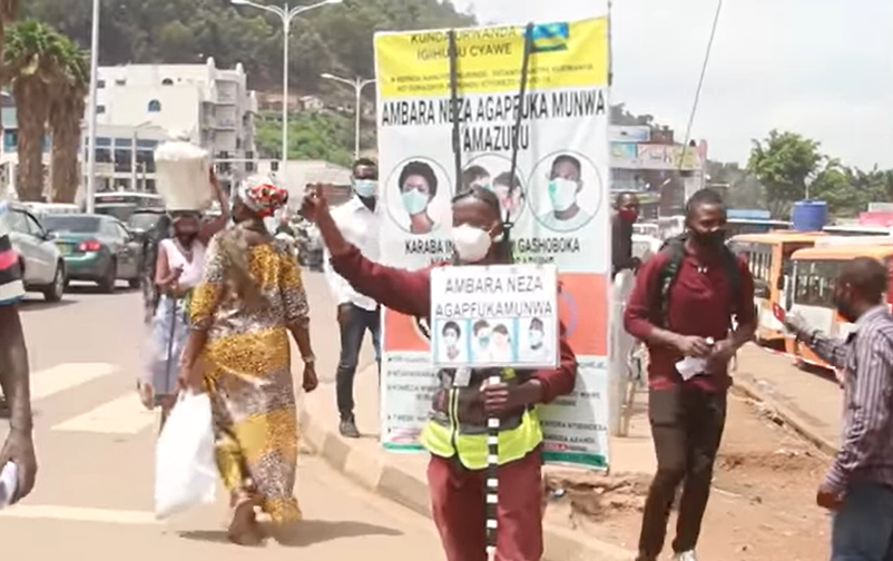 in Mu Rwanda, Utuntu n'utundi Amaze Imyaka 2 Yikoreye Icyapa Mu Mujyi Wa Kigali Gikangurira Abantu Kwirinda Covid-19/Abantu Bamwita Umusazi (Video)