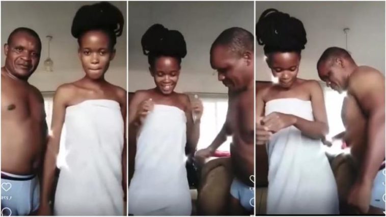 Umukobwa muto cyane yatunguye abantu, ubwo yahagararaga imbere ya camera abyinana na sugar daddy ungana na papa we bakuyemo imyenda.