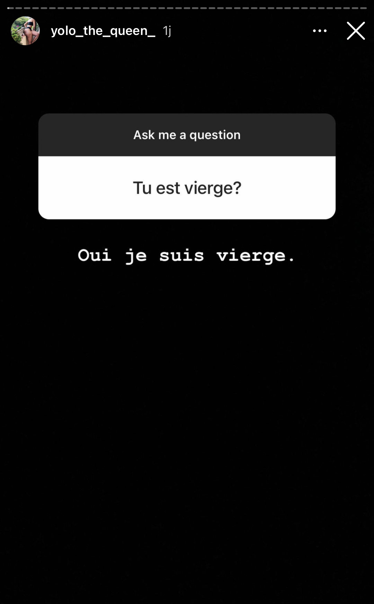 Nkuko byagaragaye, Yolo The Queen yasubije uyu mufana we wamubajije niba ari isugi, mu magambo agira ati « Yego, ndacyari isugi ».
