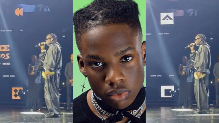 Rema arabahigitse bose! Rema abaye akigera ku rubyiniriro aririmba Calm down Abanya-Kigali Arena barayiterura ahita yegukana igihembo gikomeye