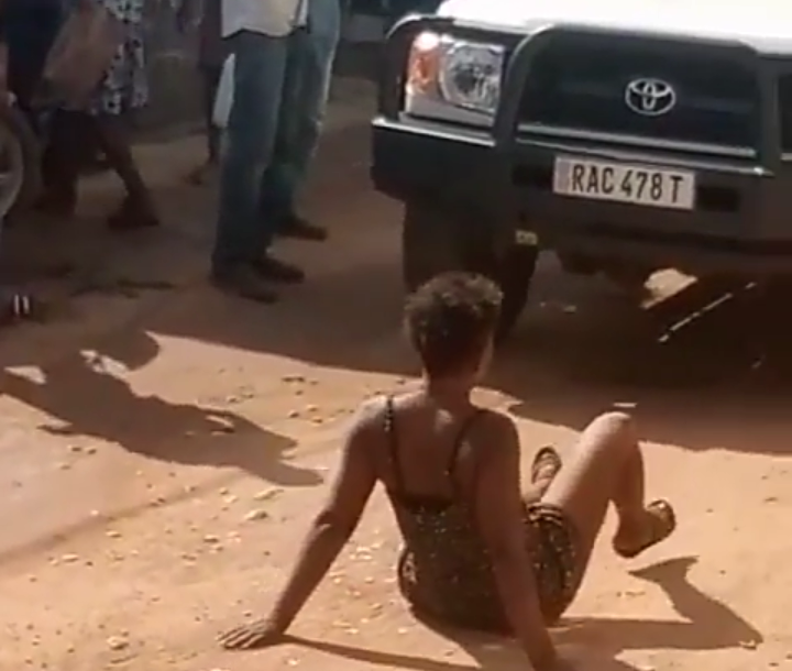 Mu mashusho yafashwe yerekana uwo mugore yabujije imodoka gutambuka, aho yahise agarama mu muhanda rwa gati mu gihe abaturage bari bashungereye cyane.