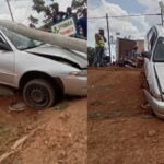 Kigali -Kicukiro habereye impanuka iteye ubwoba y’imodoka yo mu bwoko bwa TOYOTA yagonze ipoto y’amashanyarazi ihita iyicamo kabiri -AMAFOTO