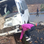 Gicumbi habereye impanuka iteye ubwoba y’imodoka itwara abagenzi mu buryo bwa rusange aho umugenzi yaciye mu kirahure agwa mu muferege bamutoragura yapfuye -IFOTO