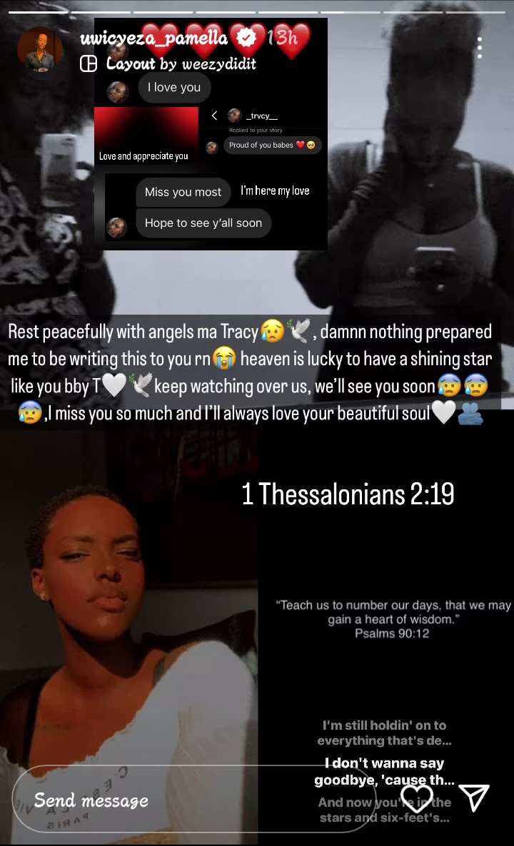 RIP Tracy: Pamella Uwicyeza yashenguwe n’urupfu rw’inshuti ye yitwa Tracy