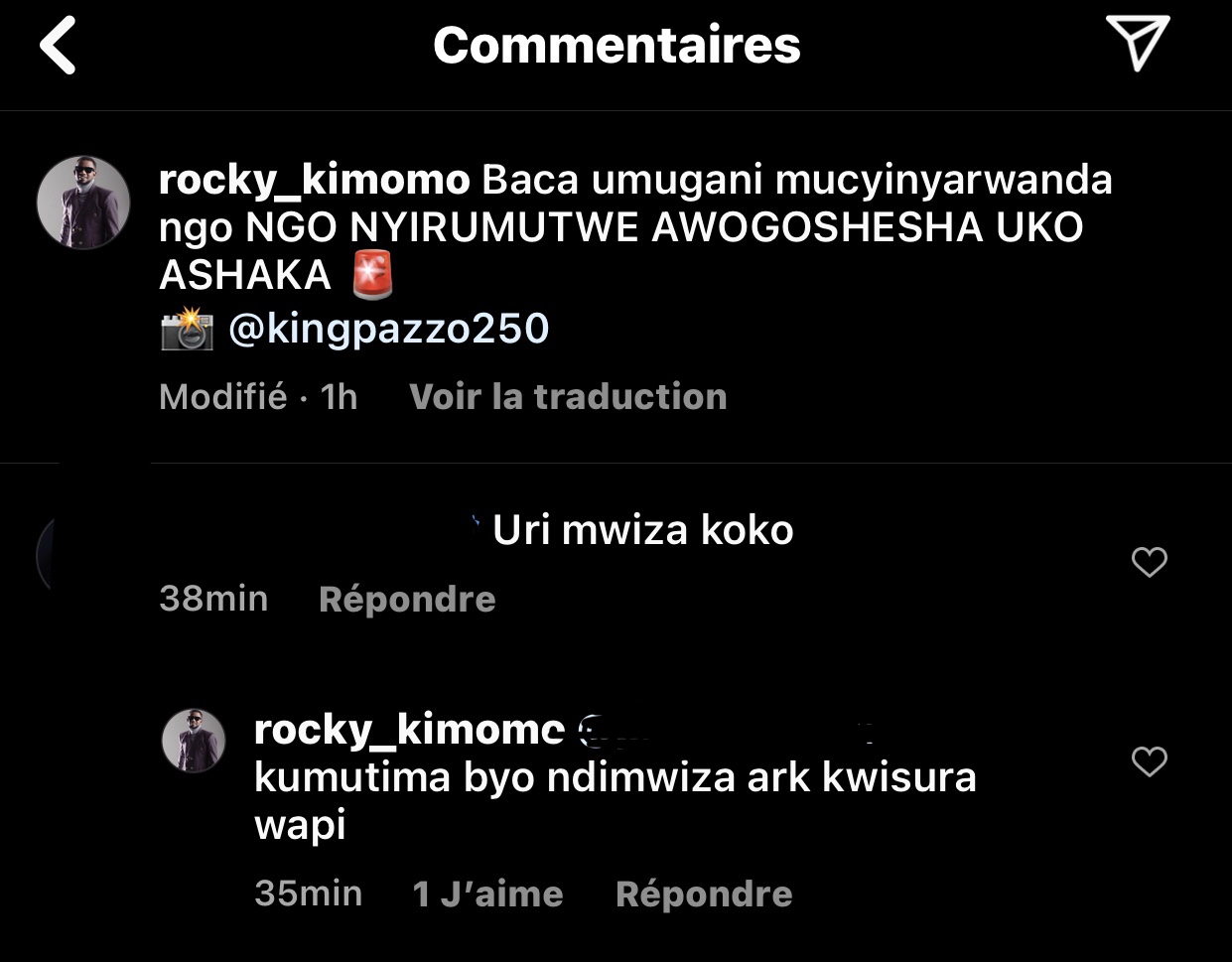 Nyuma yuko umwe mu bafana ba Rocky abonye aya mafoto yahise yandika agira ati « Uri mwiza koko ». Rocky yahise amusubiza agira ati « kumutima byo ndimwiza ark kwisura wapi ».