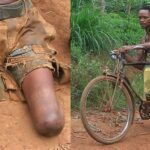 Nyirabugenge n’ubugenge bwayo! Umusore utagira amaguru ariko utwara igare ririho n’amajerekani y’amazi, ari gutangaza benshi bibaza ukuntu abikora [AMAFOTO]