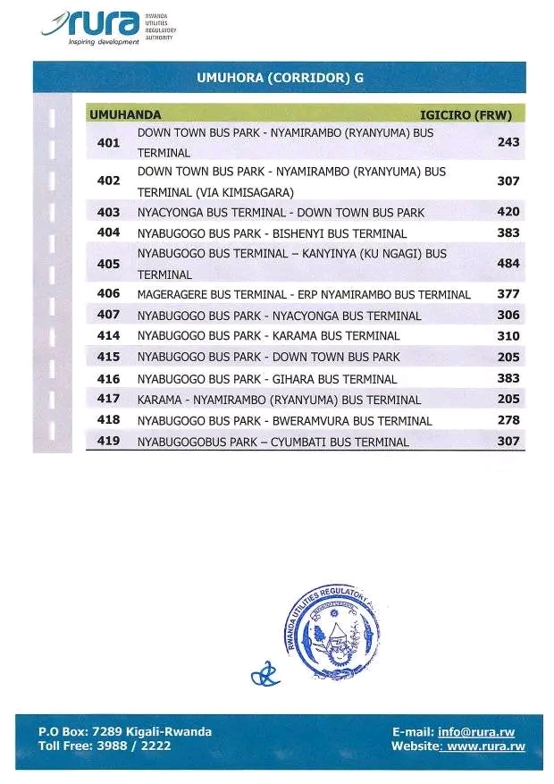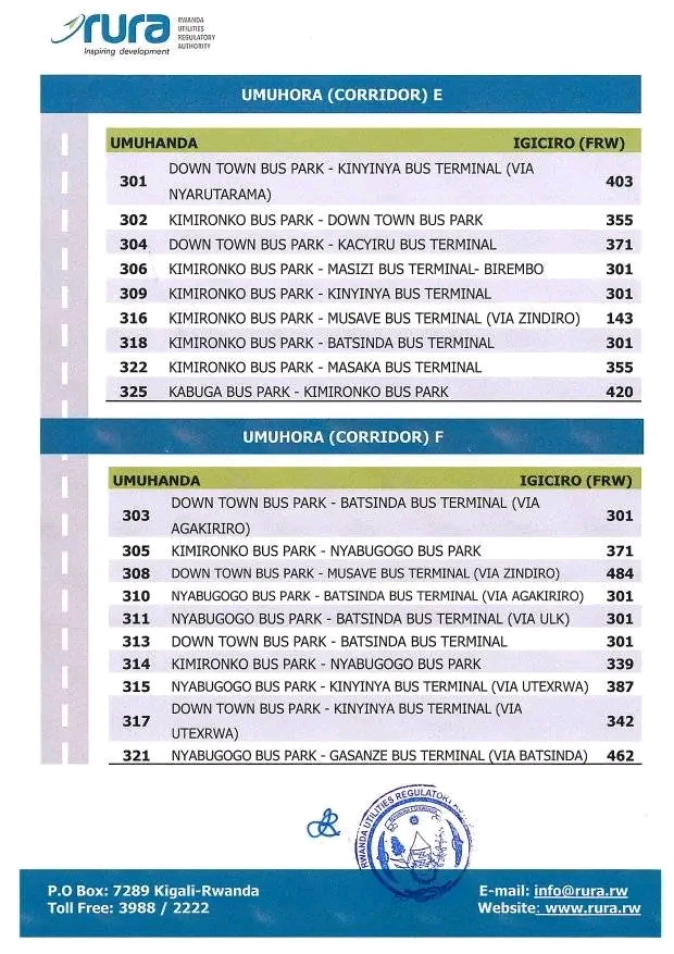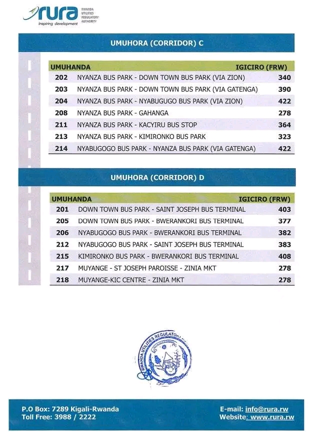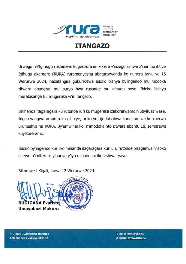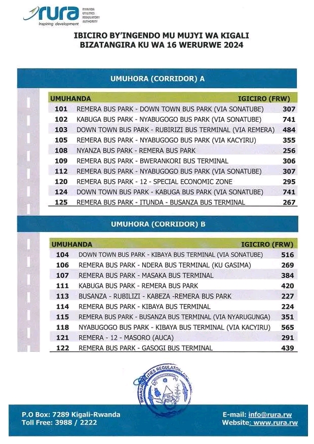 RURA yashyize hanze ibiciro bishya by’ingendo mu modoka zitwara abagenzi mu buryo bwa rusange mu Mujyi wa Kigali.