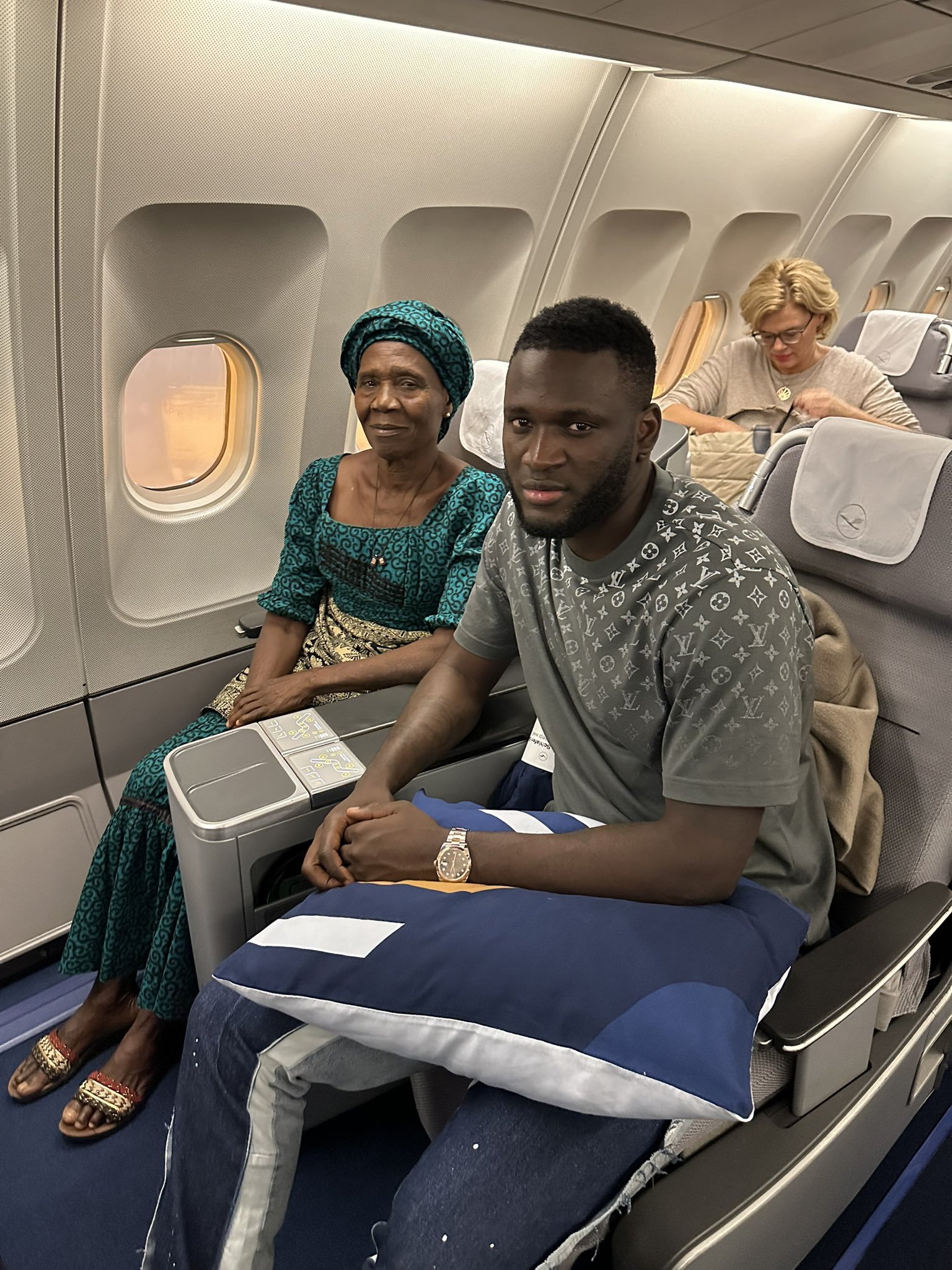 Rutahizamu ukinira ikipe ya Bayern Leverkusen n’ikipe y’igihugu ya Nigeria, witwa Victor Boniface yajyanye mu Budage na nyirakuru we wamureze bombi bicaranye mu ndege.