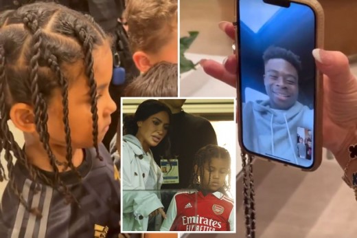 Nyuma y’uko badahuye, Saka yahamagaye uyu muryango mu buryo bw’amashusho ‘video call’ maze avugana n’umwana wa Kim Kardashian witwa Saint.