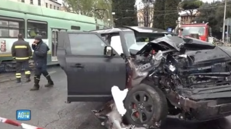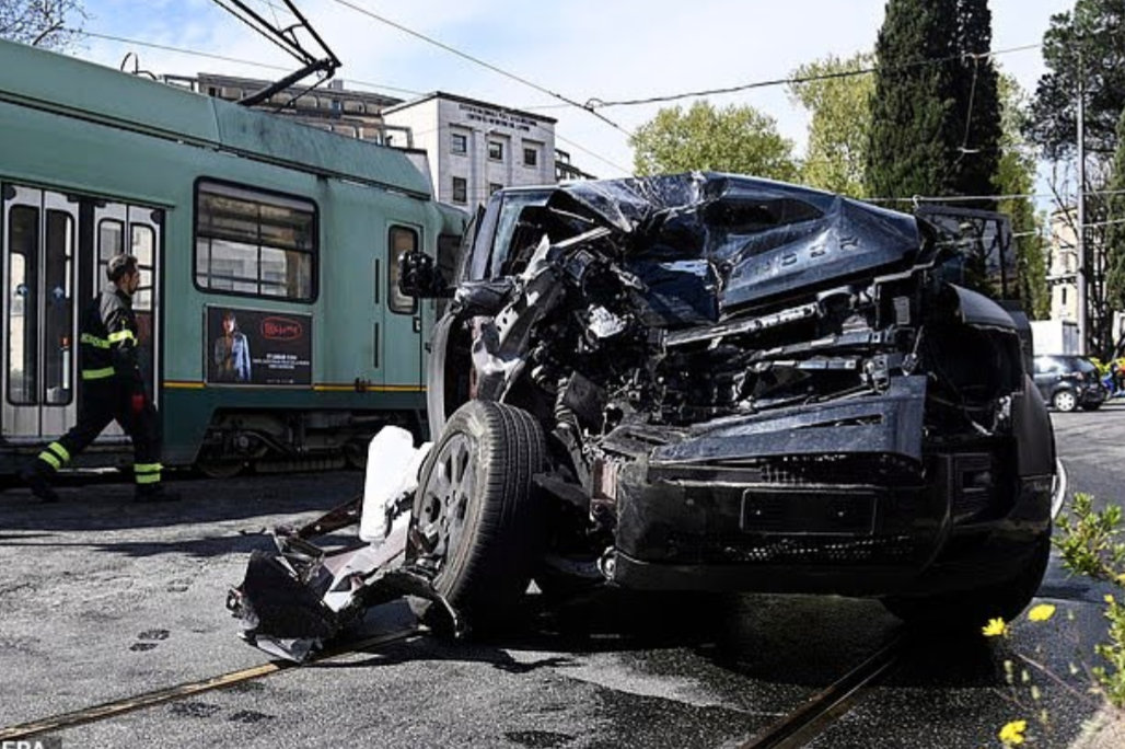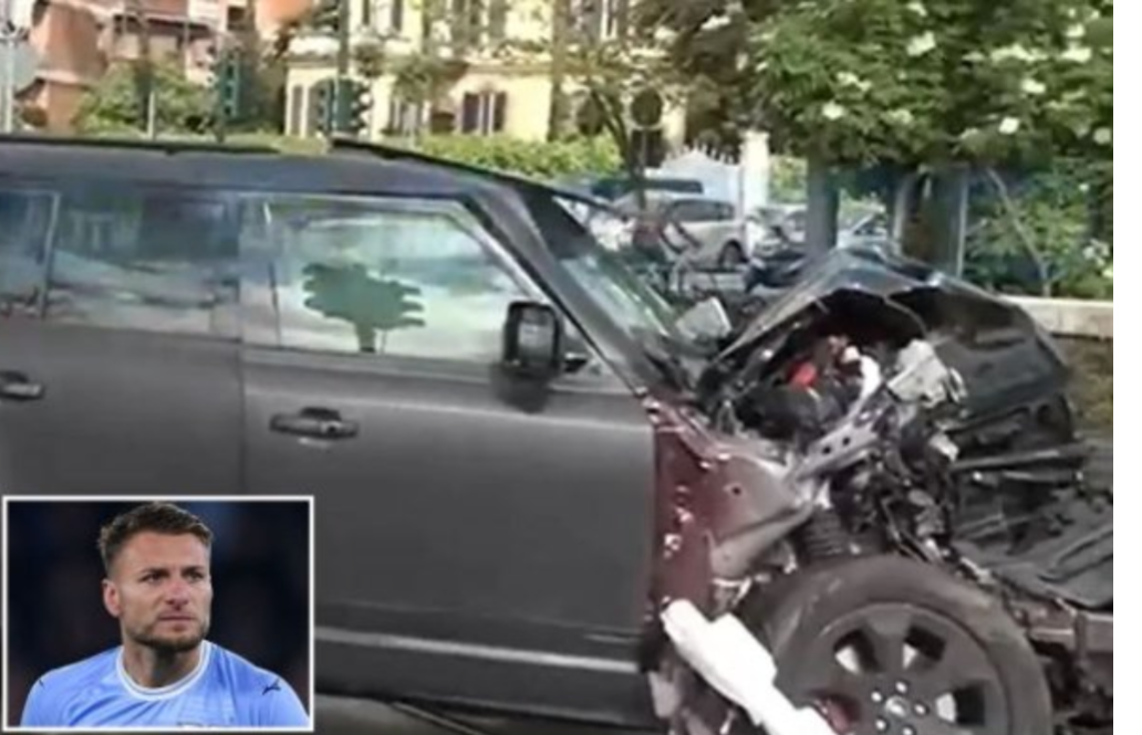 Amashusho ateye ubwoba yerekana igice cy’imbere cy’imodoka ya Immobile yo mu bwoko bwa Land Rover SUV yangiritse cyane nyuma y’iyi mpanuka yabereye hafi ya Stadio Olimpico, ikiniraho ikipe ye ya Lazio.