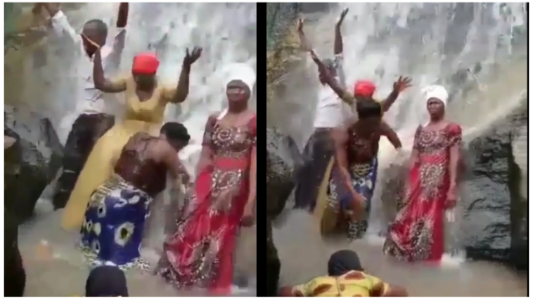 Ni mu mashusho yasakaye ku mbuga nkoranyambaga aho hagaragaye abakiristu barimo gusengera munsi y’urutare runini rutembaho amazi menshi, maze abemera Imana bibatera urujijo bibaza ko ubu buryo aba bagore basengamo aribwo buryo Imana yabasha kubumva.