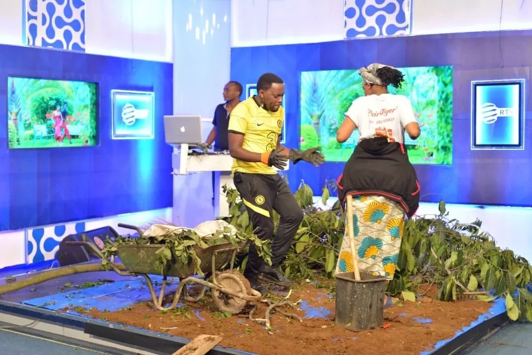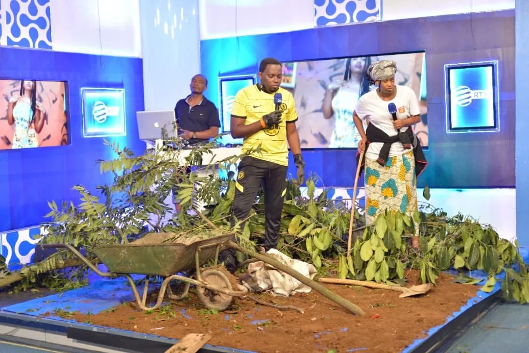 Rwanda: Abantu batunguwe no kubona abanyamakuru bakoreye umuganda muri studio (amafoto)