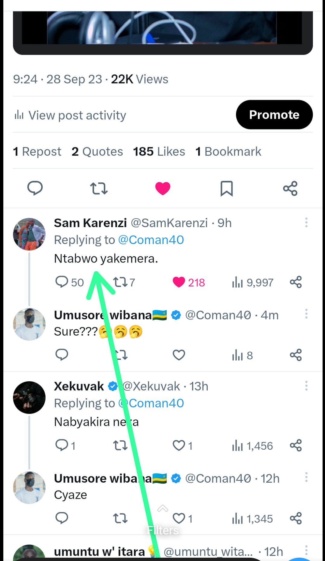 Uyu wiyita Umusore wibana uzwi kuri X, yagize ati  “Wabyakira gute SAM KARENZI ahawe akazi ko kuba umunyamakuru w’imikino kuri RBA(urubuga rw’imikino)?”