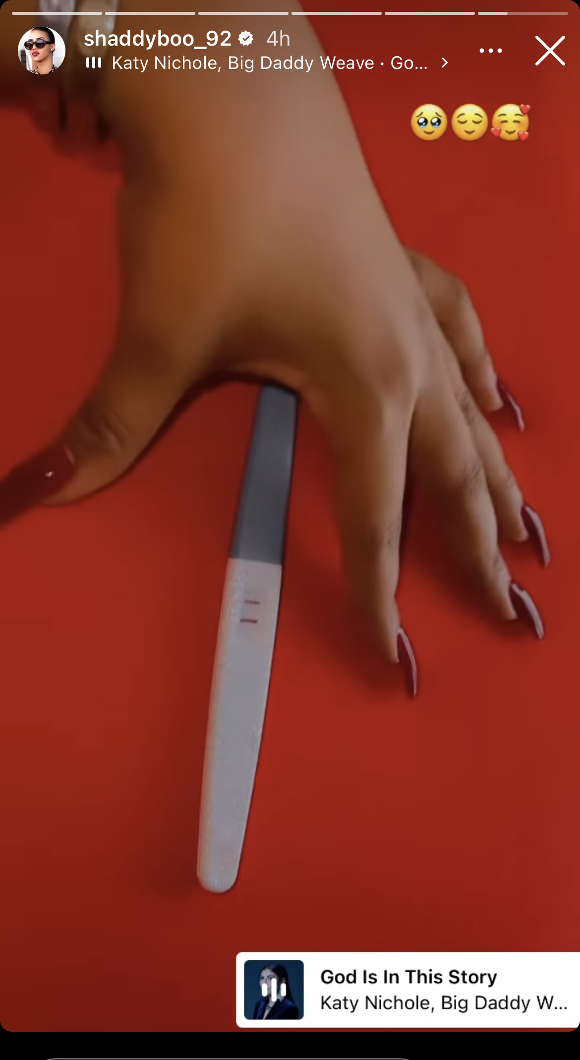 Abinyujije ku rukuta rwe rwa Instagram rukutikirwa n’abarenga miliyoni, Shaddy yifashe ibizami ashaka kumenya ko atwite, maze abonye ko atwite ahita abisangiza abamukurikira.